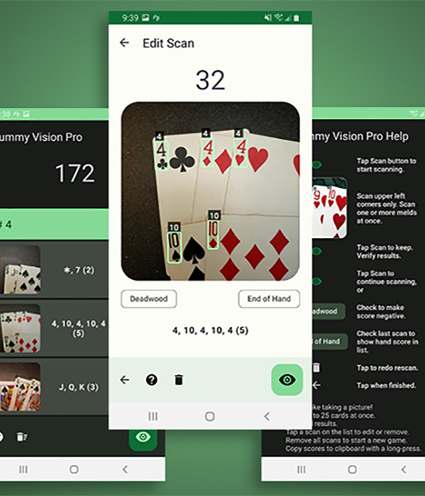 Rummy Vision Pro is an object detection neural network trained to detect playing cards. The Android application scans and scores cards for the game Rummy.